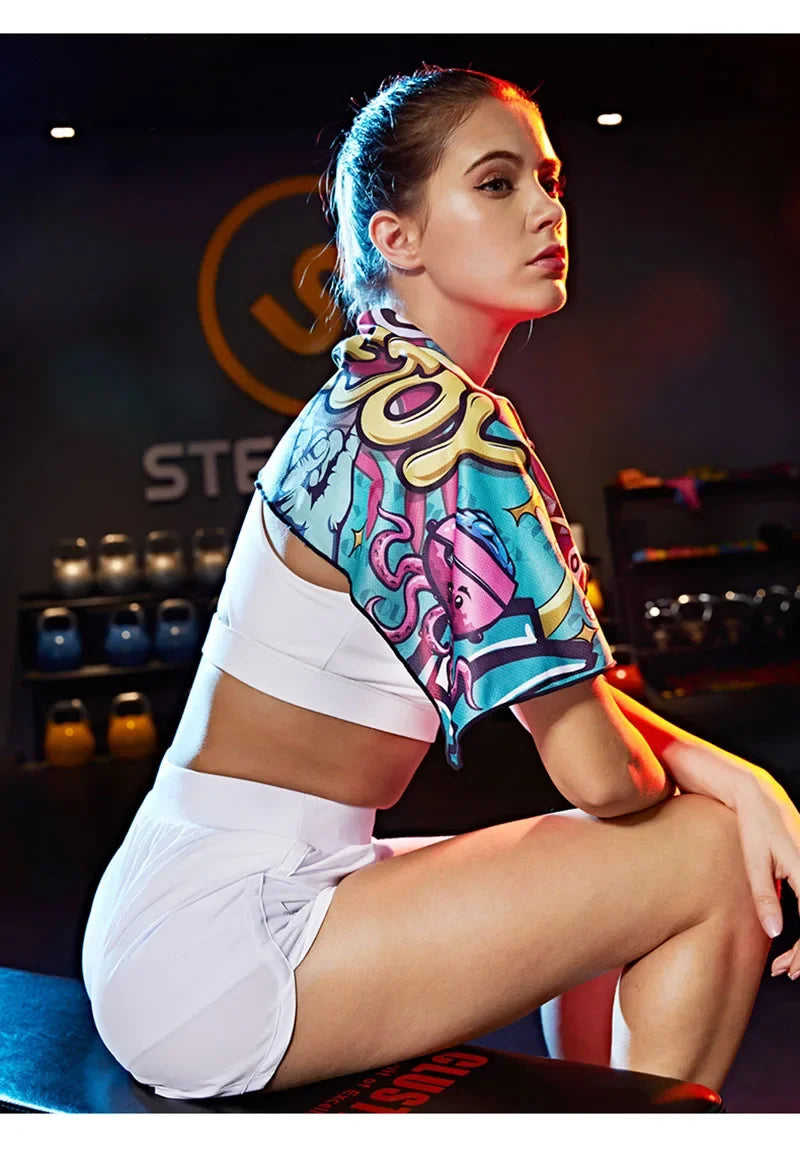 This towel is designed for rapid cooling and quick drying, perfect for use in gym or yoga settings.